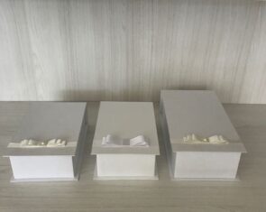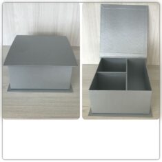 O processo de fabricação desses modelos de caixas é praticamente artesanal, o acabamento e o revestimento final (forração), podem ser de papel e tecido.