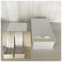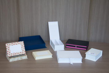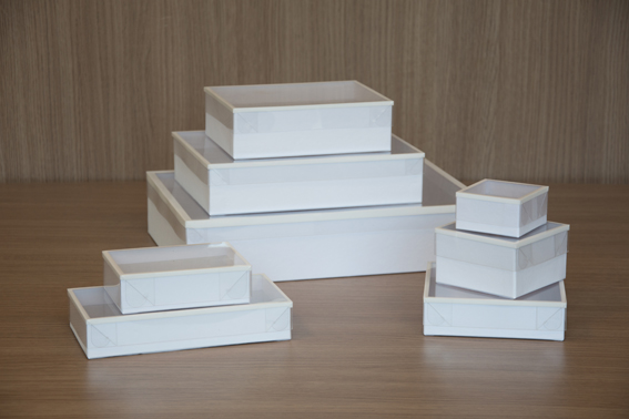 Os modelos padrão fabricados na Linha Sofisticada são: Caixa Estilo Livro, Tampa e Fundo e Tampa PVC (acetato).